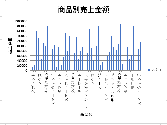 - グラフ作成: 商品別売上金額の棒グラフが表示される